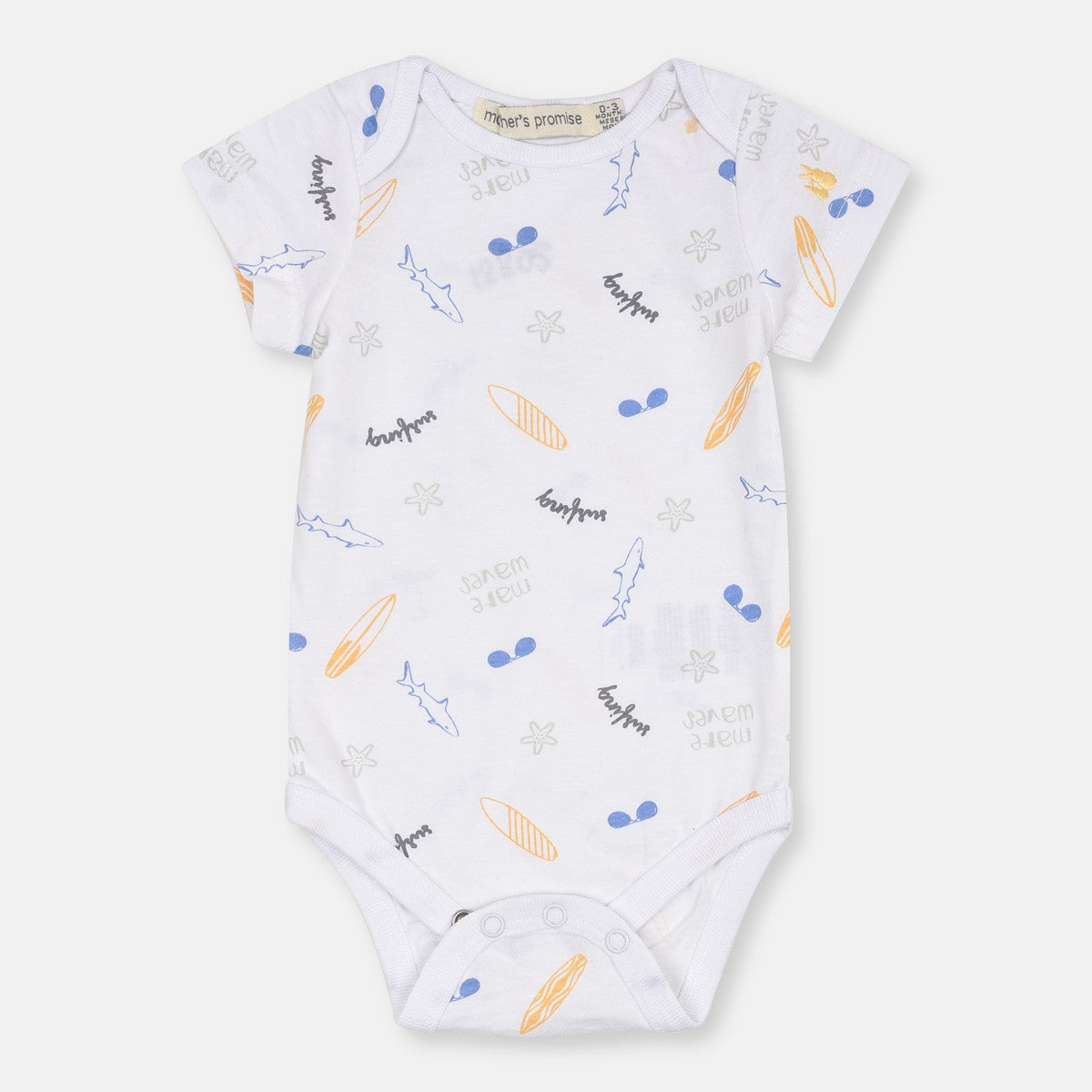 Mother's Promise Surfing & Shark Print White Body Suit 12866