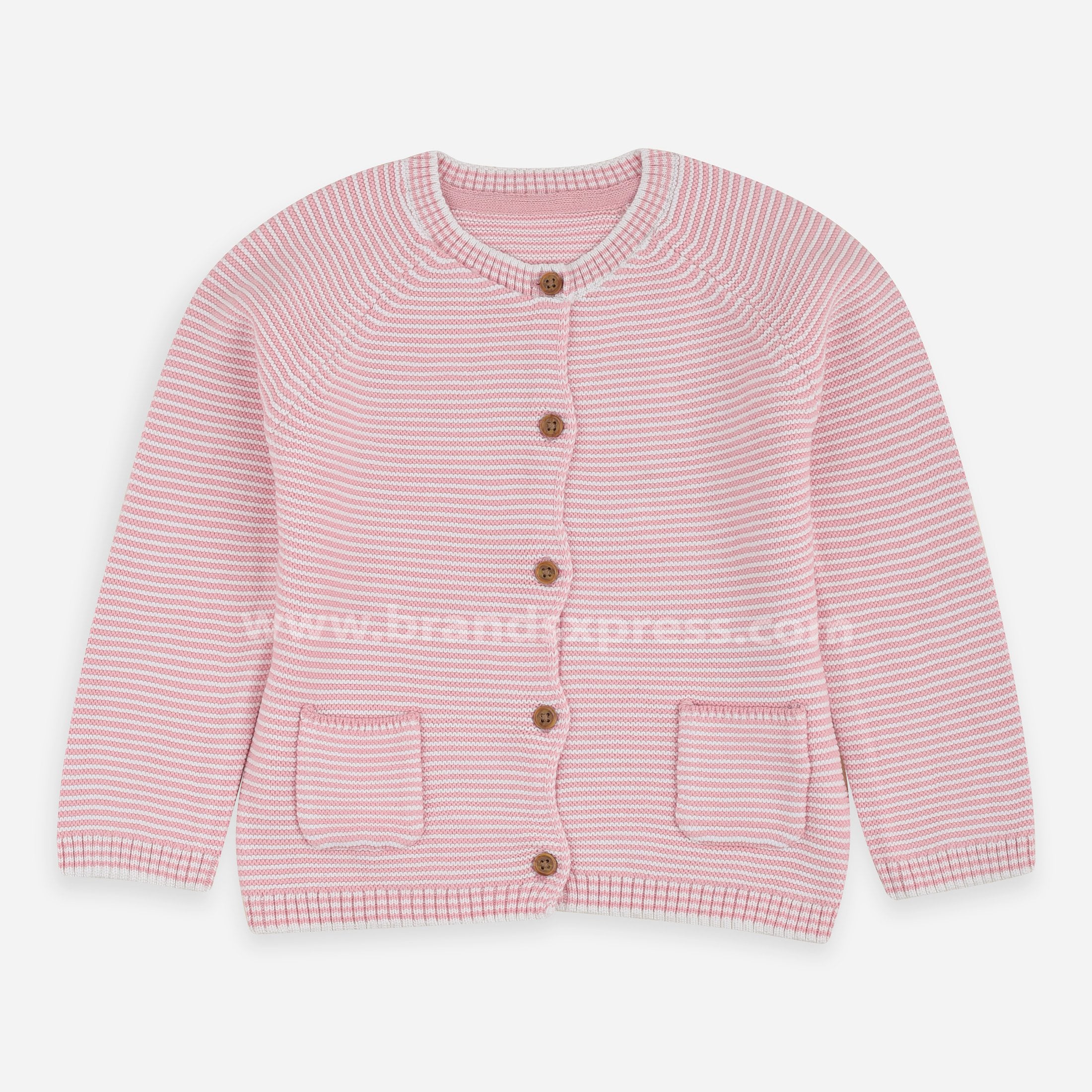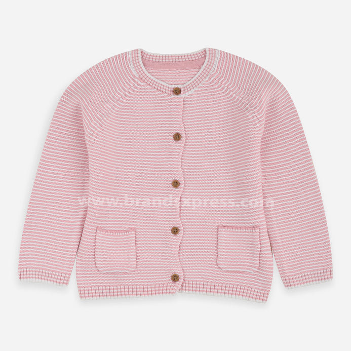 MS Front Pocks Pink And White Knitted Cardigan 7812