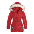 Music Sign Fur Hoodie Dark Red Puffer Jacket 12690