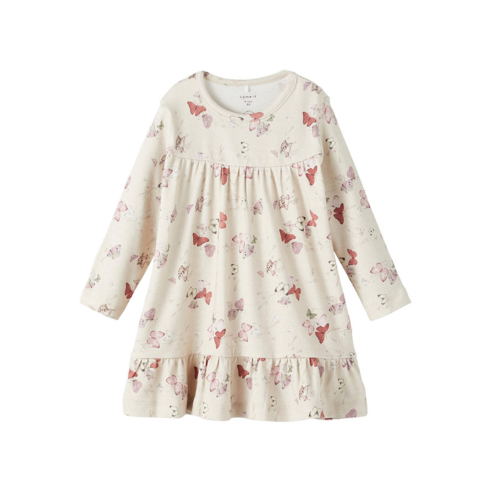 NM It All Over Butterflies Full Sleeves Beige Frock 10389