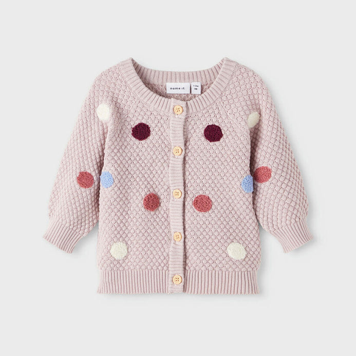NMT Embroided Color Dots Textured Tea Pink Cardigan 10896