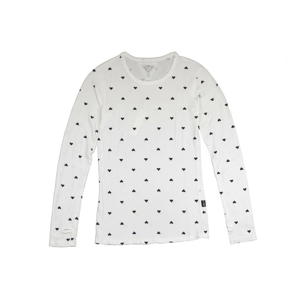 NXT All Over Black Hearts Print White Full Sleeves Tshirt 2423