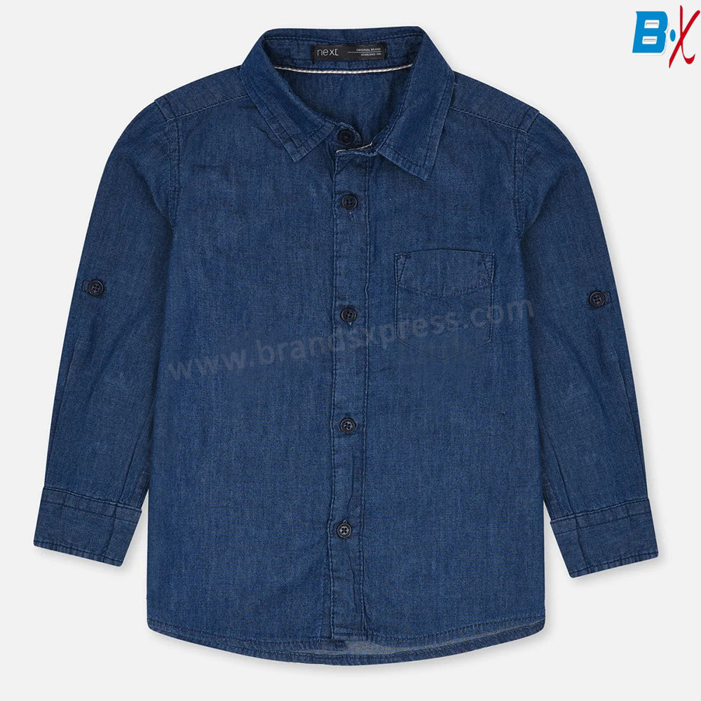 NXT Plain Soft Denim Mid Blue Casual Shirt 10797