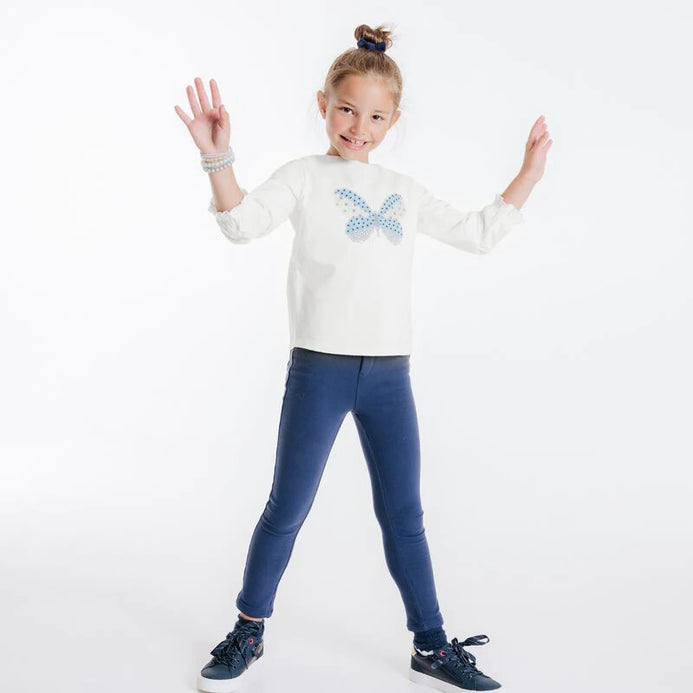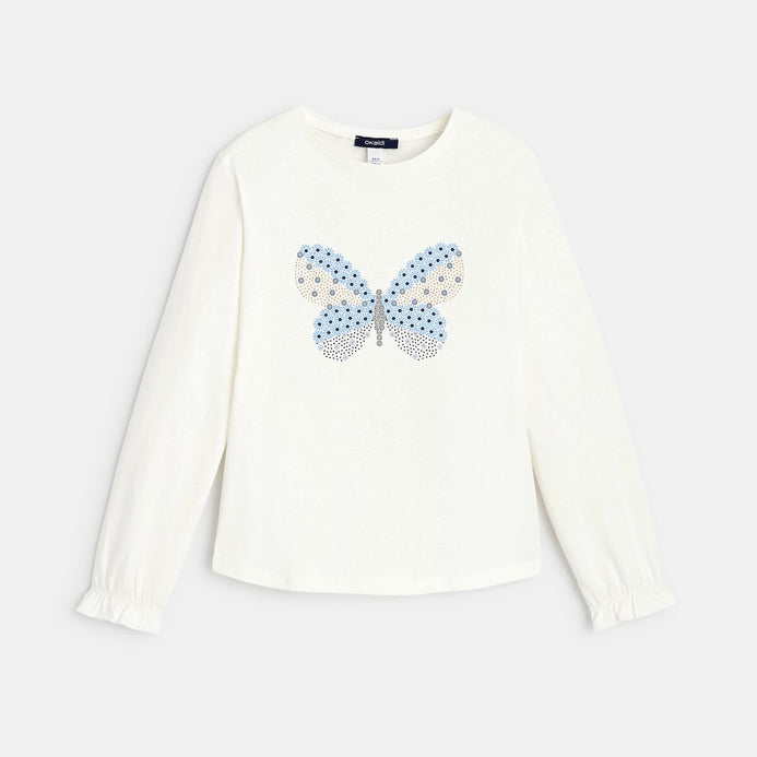 OKD Floral Butterfly White Full Sleeves Top 10863