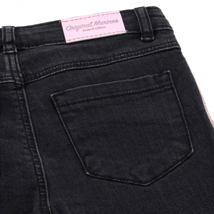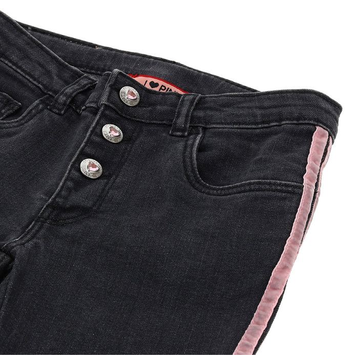 OM Heart Button Velvet Stripe Dark Grey Denim 3198