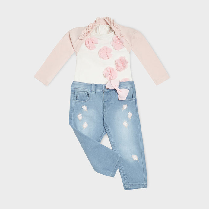 OM Light Blue Jeans With Pink Bow 1014