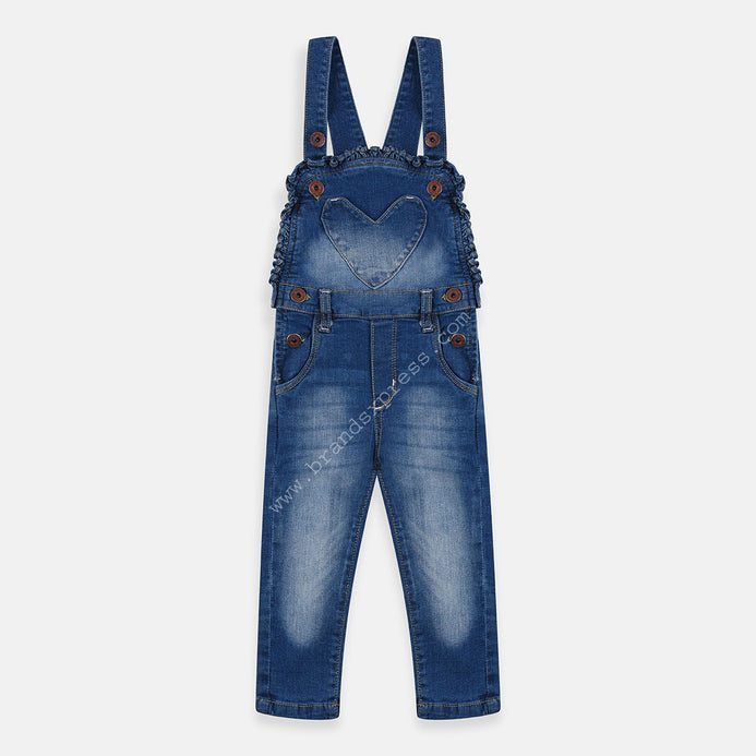 OSH Frill Heart Pocket Dark Blue Denim Dungaree 4594