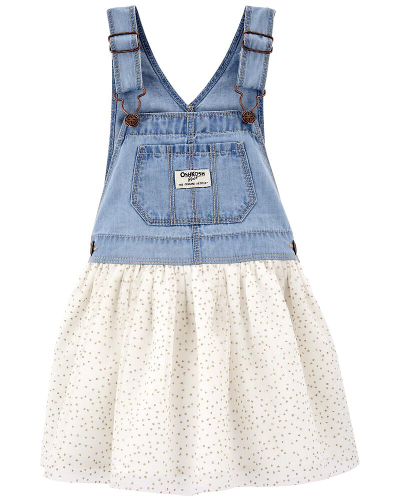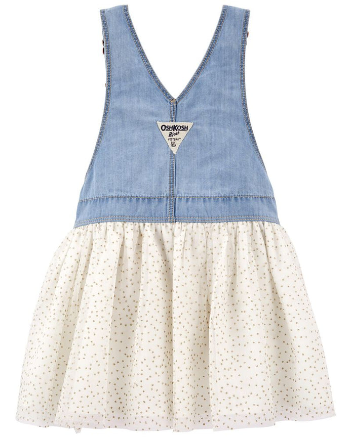 OSH Glitter Dots White Flare Blue Denim Frock 9706