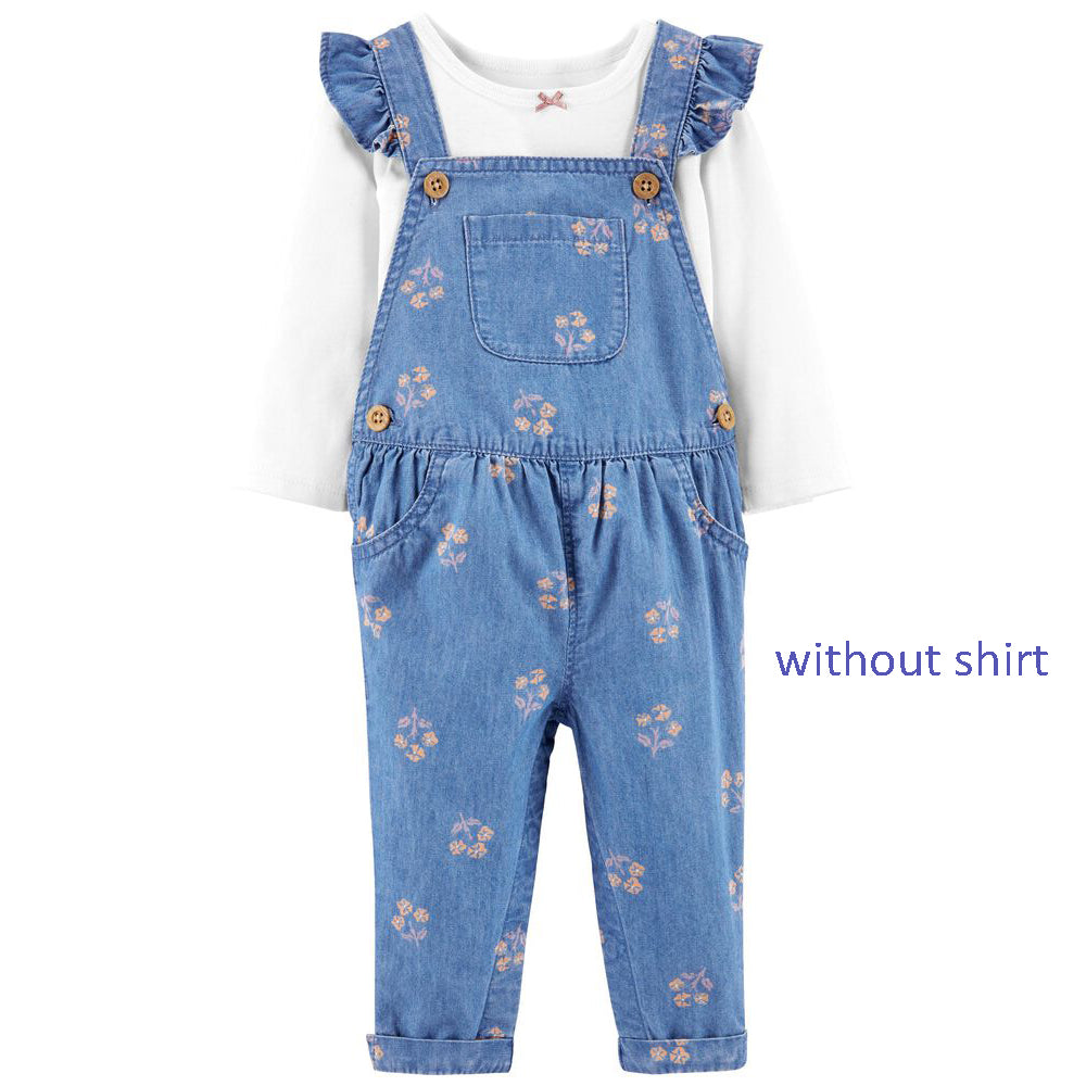 OshKosh Peach Flowers Wash Style Denim Blue Look Cotton Dungaree 11582
