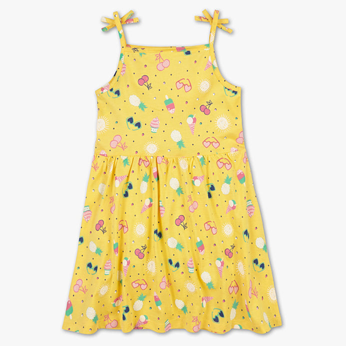 Atif Khan Palomino Cool Summer Stripe Yellow Frock