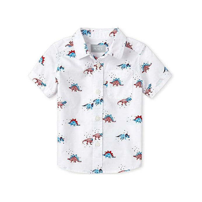 PLC Dino Printed White Half Sleeves Casual Shirt 7100