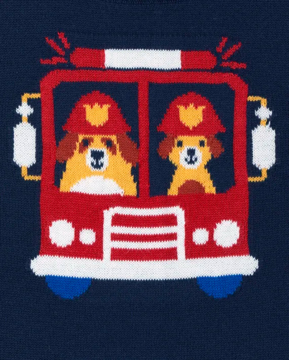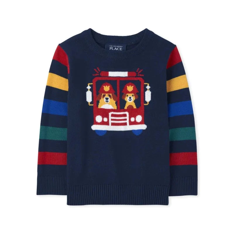 PLC Fire Fighter Team Color Striped Sleeves Navy Blue Sweater 10882