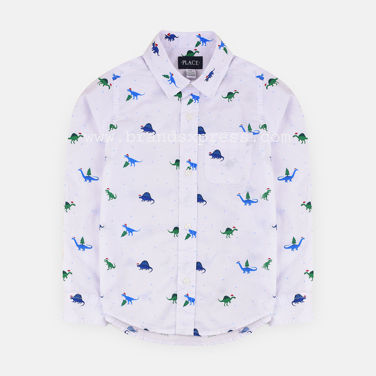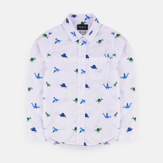 PLC Green & Black Dino Printed White Casual Shirt 4776
