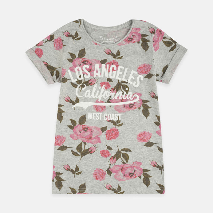 PMK Grey All Over Rose Printed Los Angles Top 1613