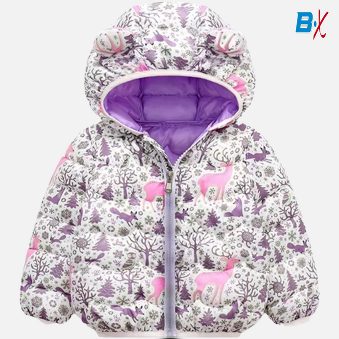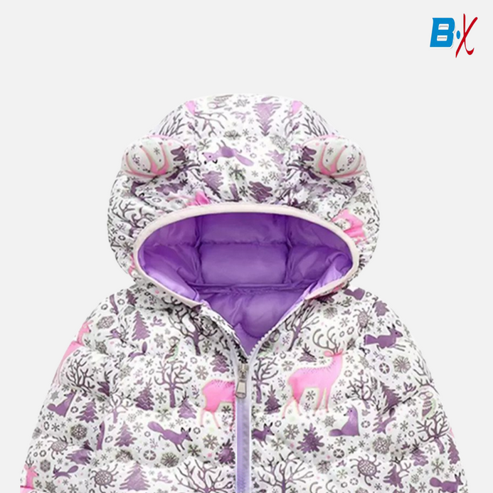 PTZZ Deer Print White Puffer Jacket 10112