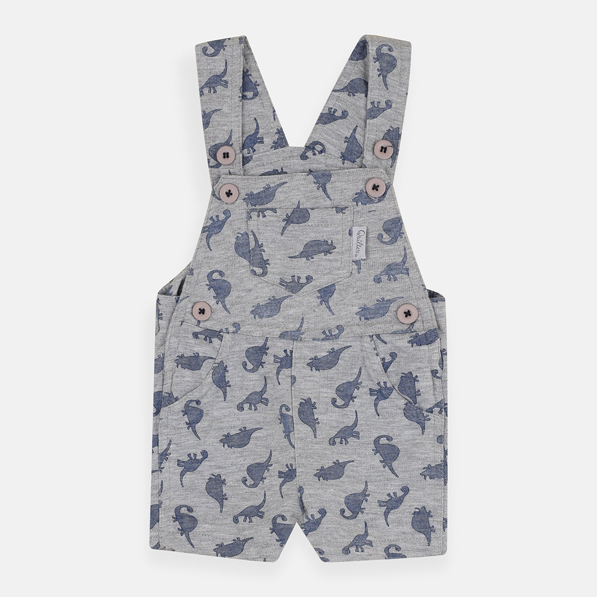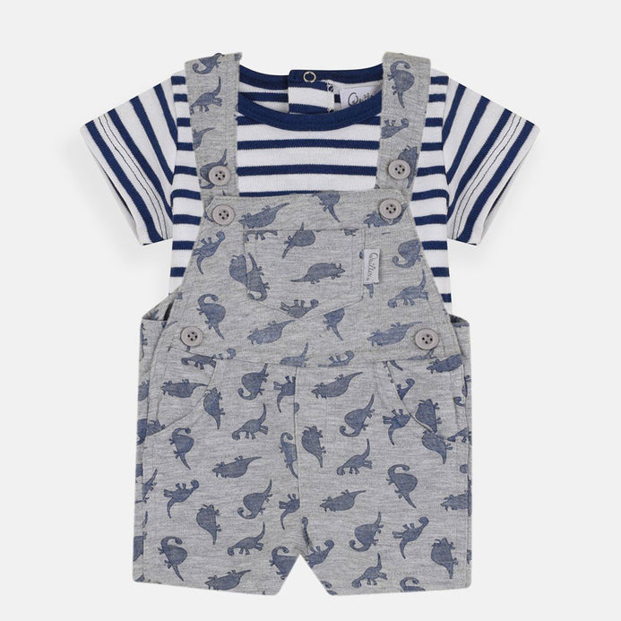 QLT Dino Print Grey Dungaree With Stripe Tshirt 2 Piece Set 4171