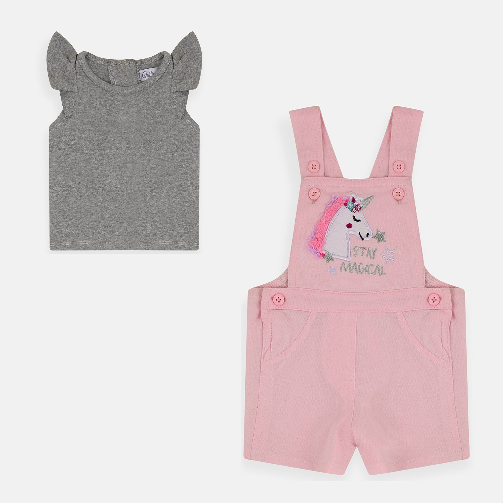 Usman Hameed QLT Stay Magical Embraided Unicorn Pink Dungaree With Grey Top 2 Piece Set 4175