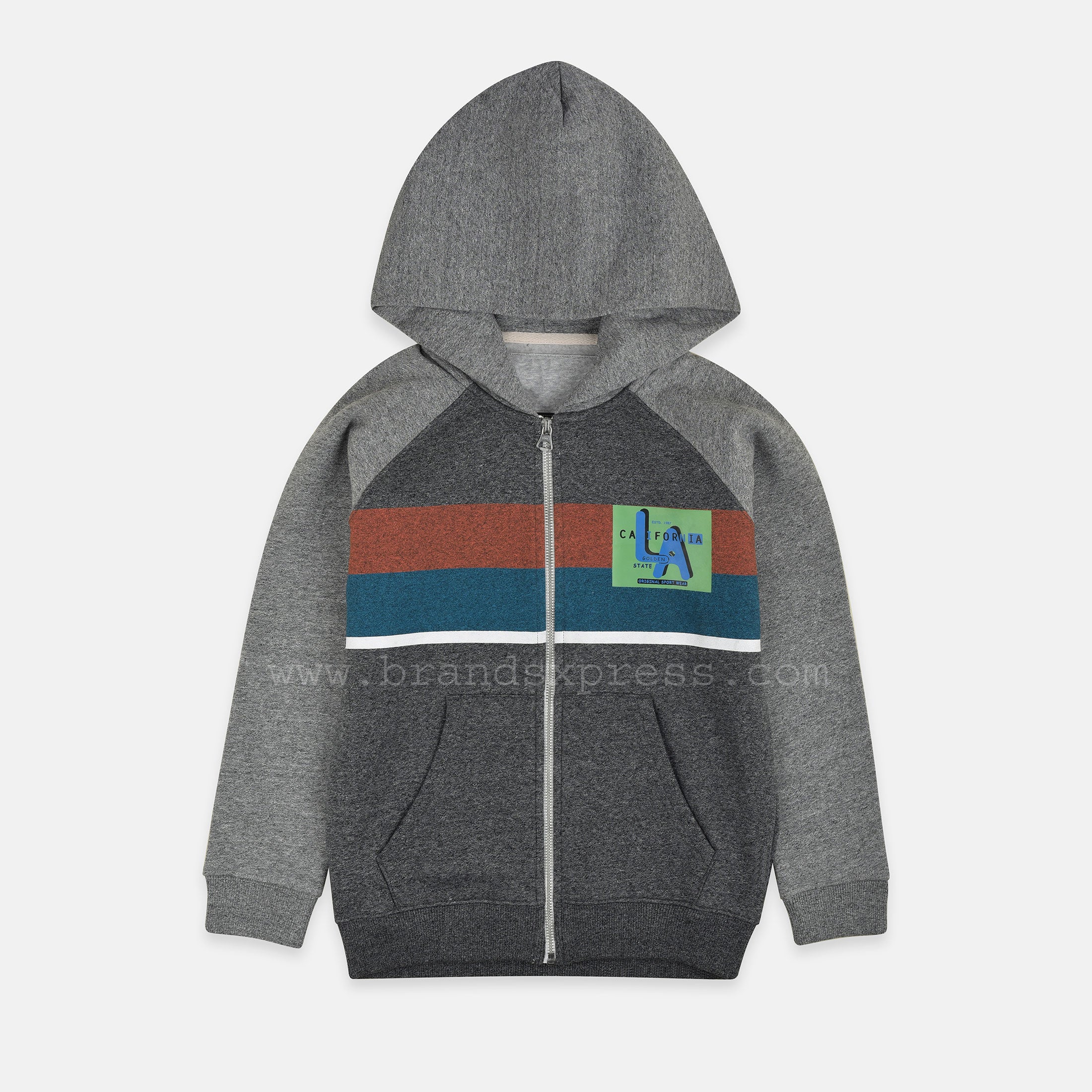 QS Block Colors Grey Top Grey Zipper Hoodie 3168