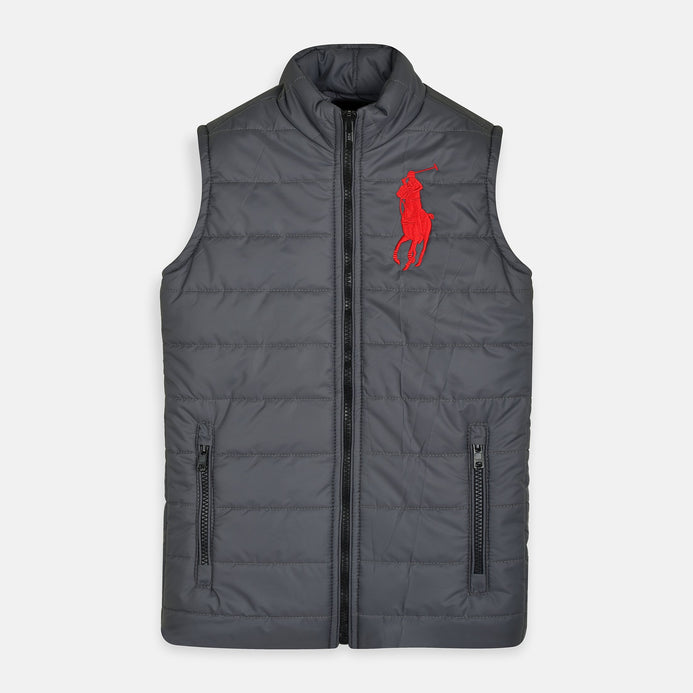 R.L Red Pony Sleeveless Grey Puffer Jacket 3186