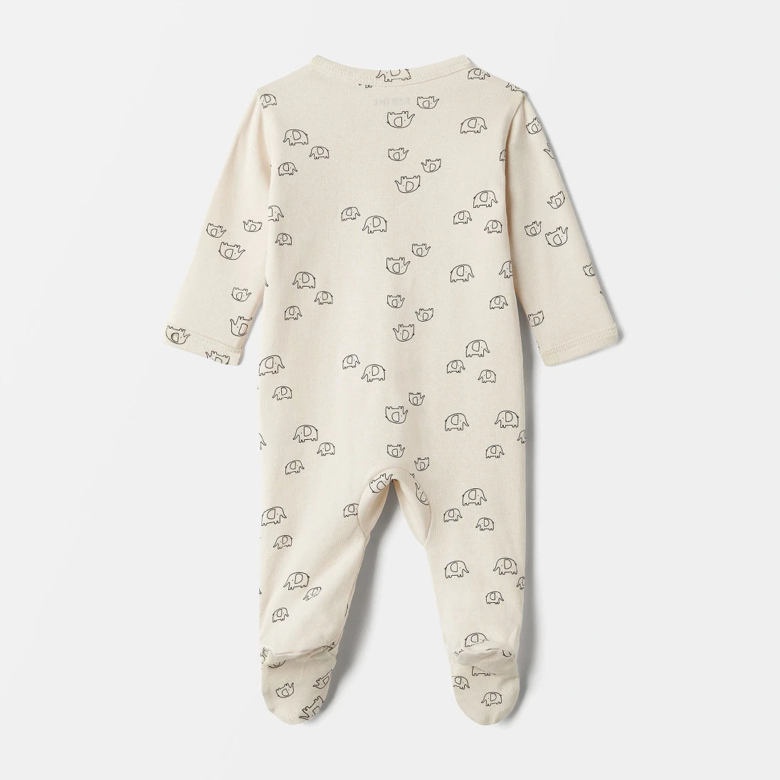 RK All Over Elephant Print Cream Full Sleeves Romper 13362