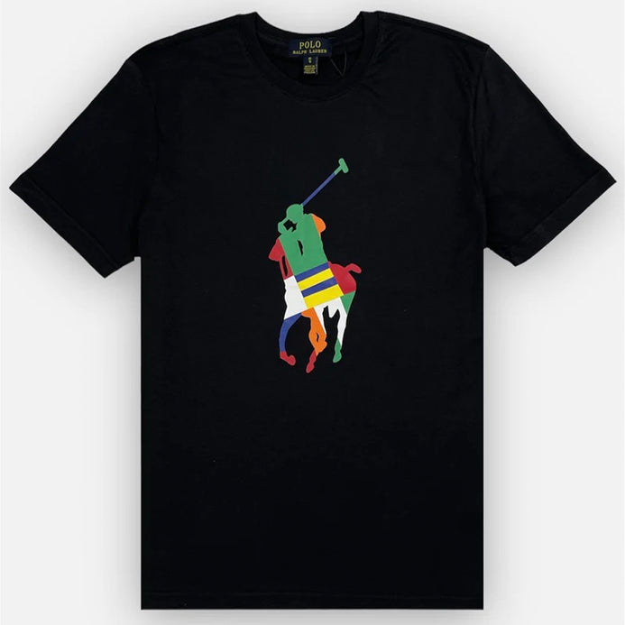 RL Multi Flag Polo Logo BLack Tshirt 10840
