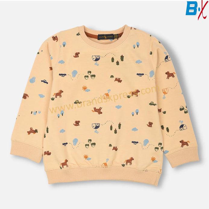 RL All Over Living Design Biscuit Brown Terry Sweatshirt 11840