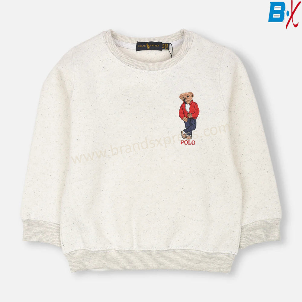 RL Embroided Bear Logo Textured Bone White Fleece Sweatshirt 11837