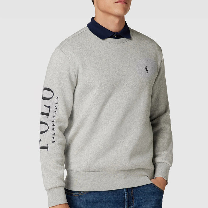 RL Small Pony Logo Sleeves Print Light Grey Fleece Sweatshirt 10614