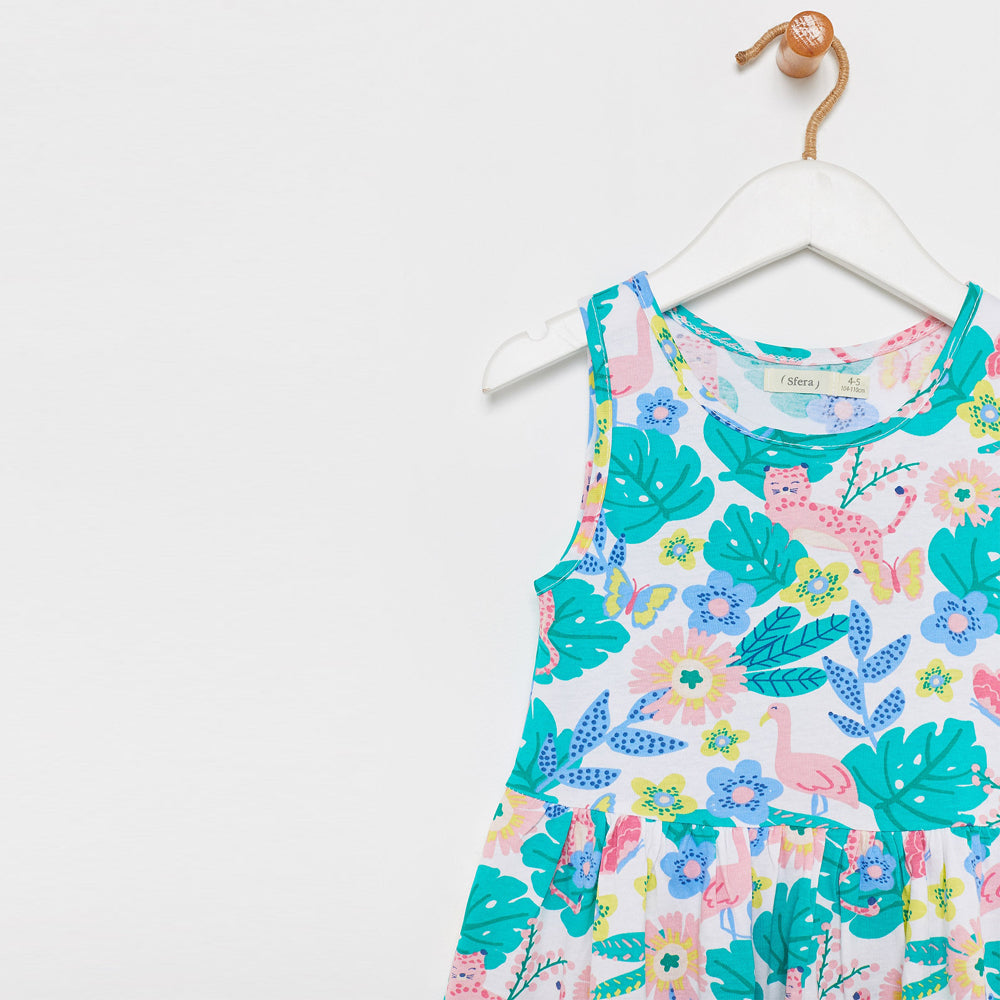 SFR Cat and Leaves White Sleeveless Frock 2214