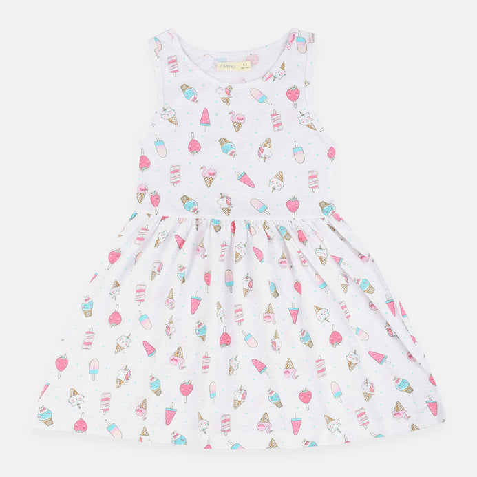 SFR iceCream Print White Sleeveless Frock 2224