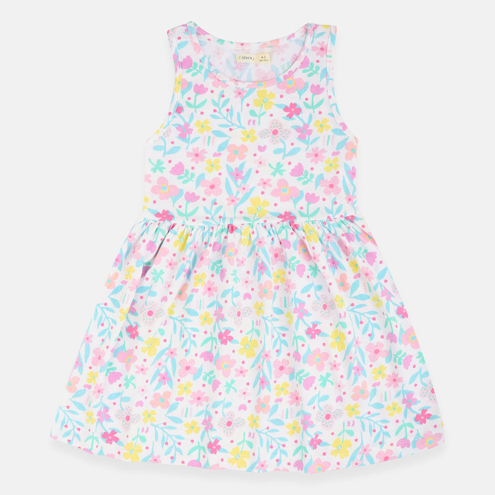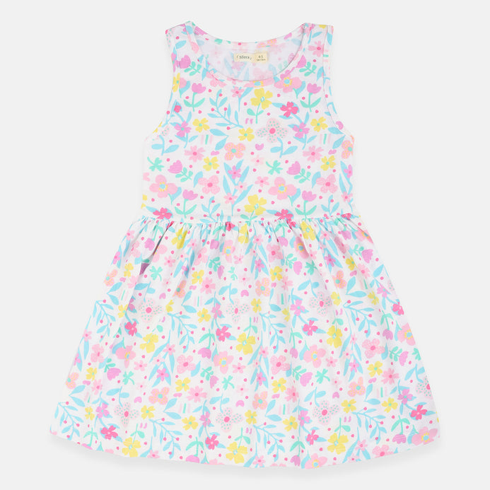 SFR Multi Color Flowers Sleeves Frill White Frock 2226