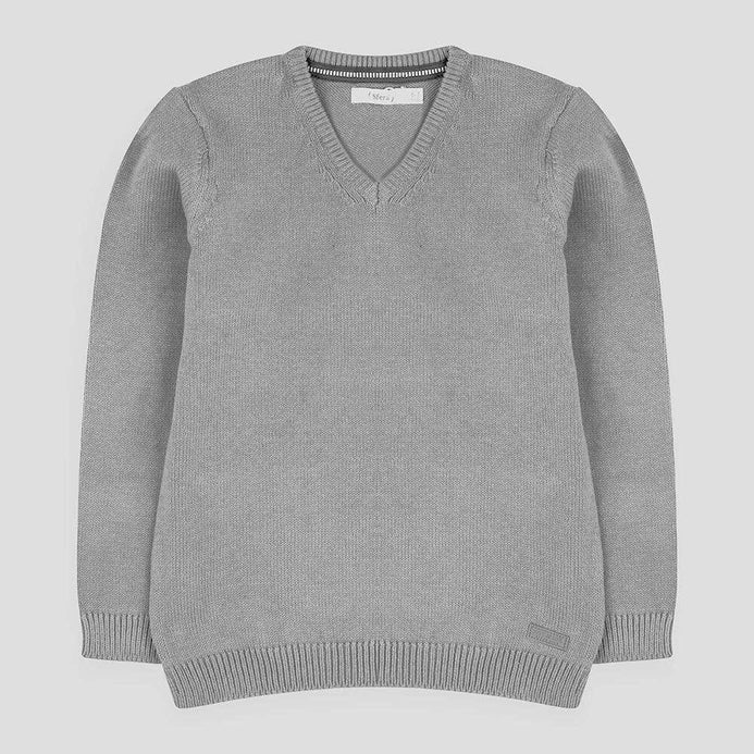 SFR Plain Dark Grey V Neck Sweater 7689