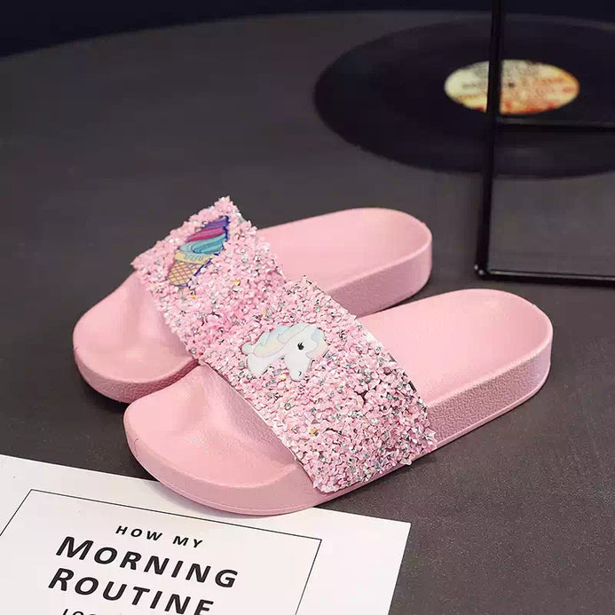 Shimmering Stones Unicorn Pink Slippers 2392