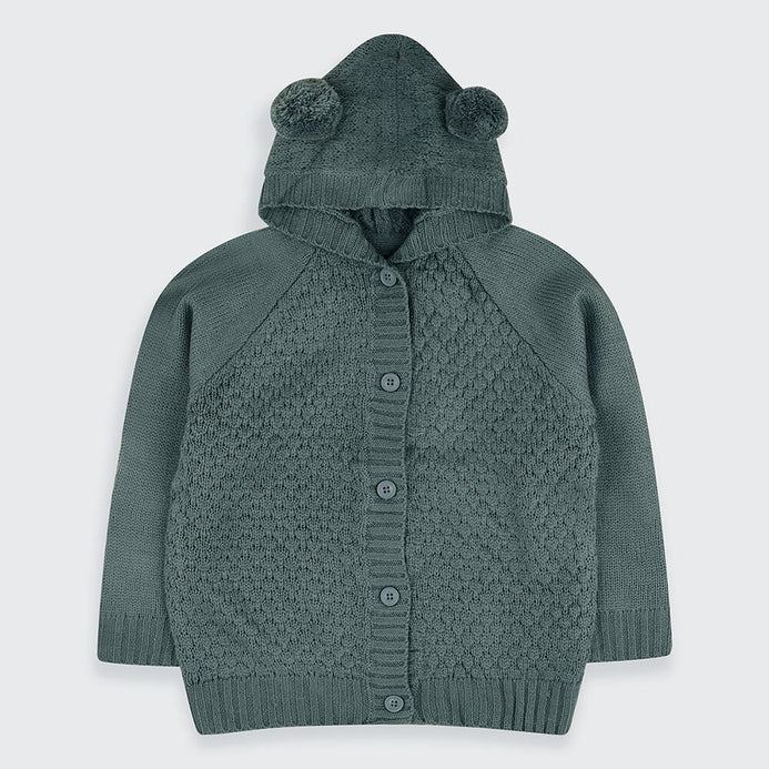 SHN Bear Hood Sea wood Grey Cardigan 7695
