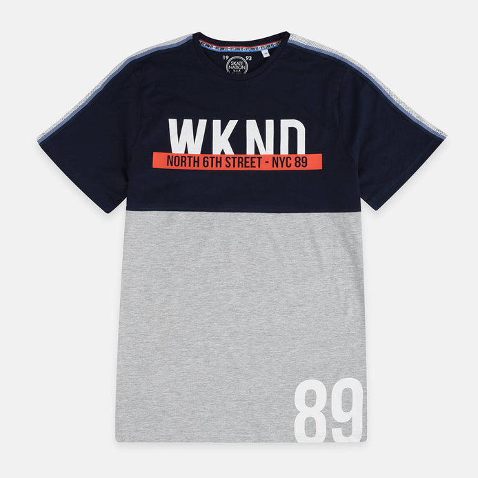 SN Color Block WKND Blue and Grey Tshirt 2055