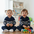 SM Mon Bebe Embroided white Stripes Navy Blue Sweater 14402
