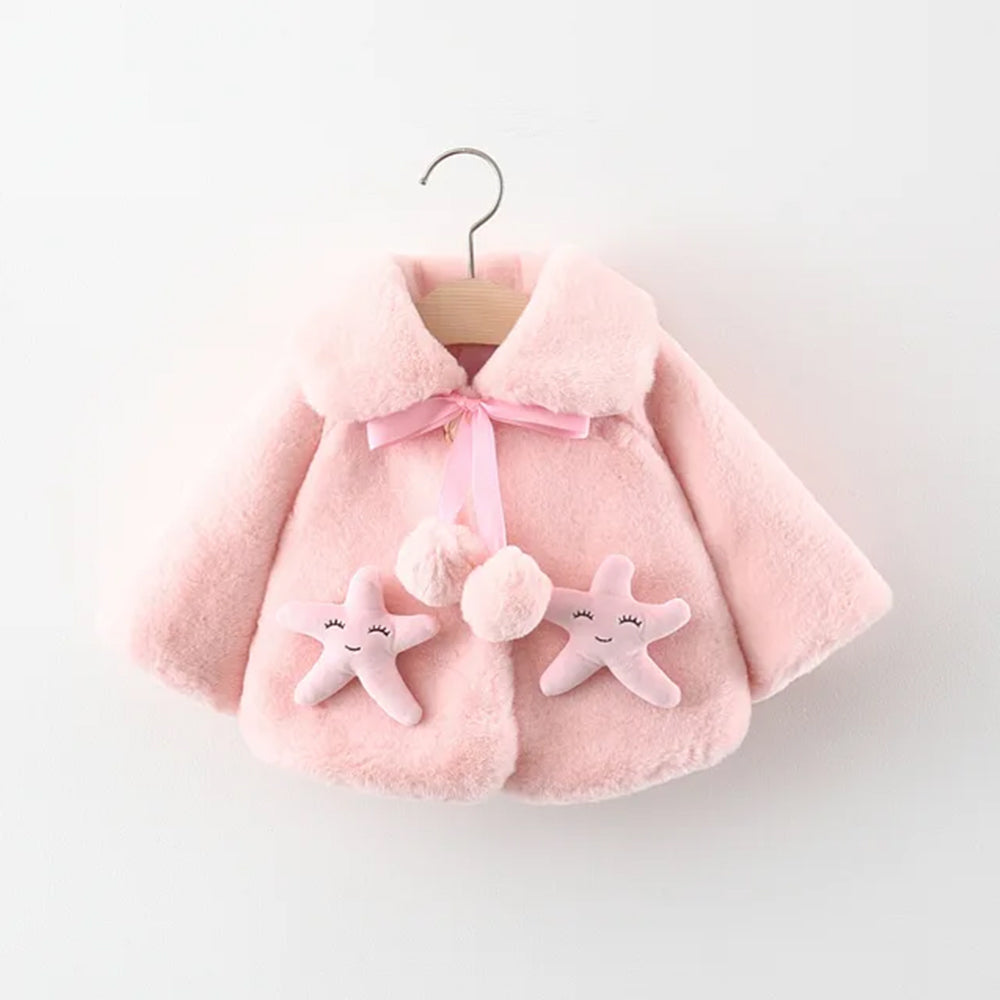 Star Applic Soft Fur Light Peach Snow Cape Shawl 12248