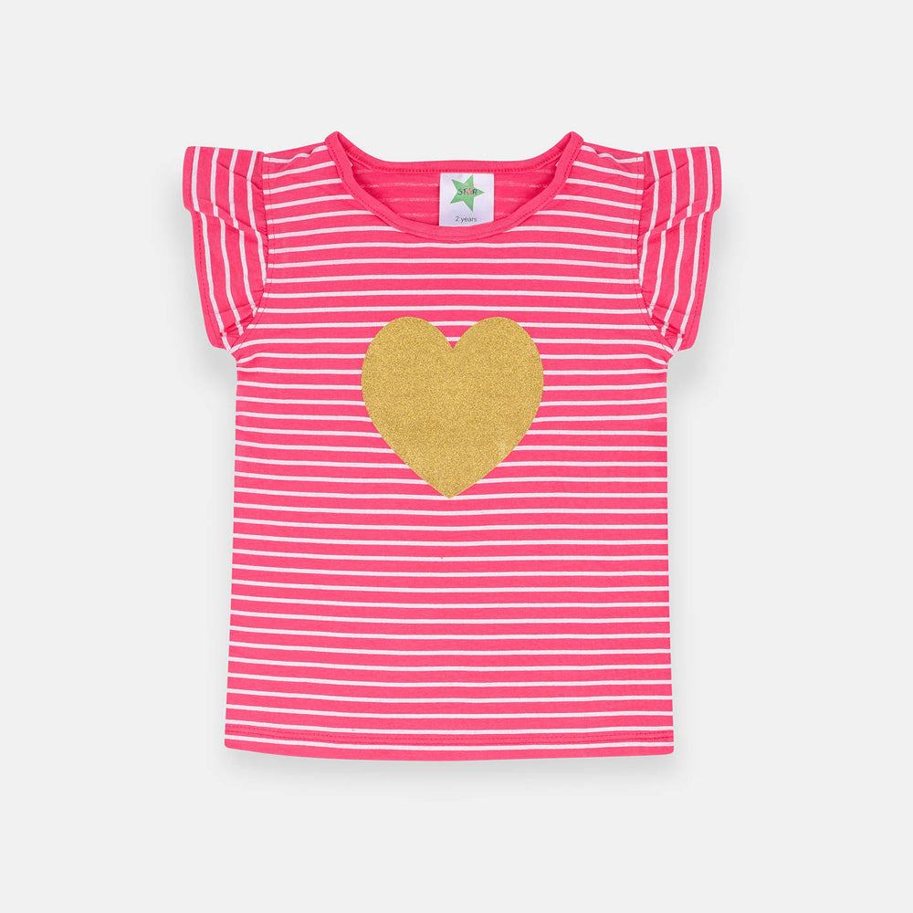 STR Glitter Heart Pink White Stripe Top 1331