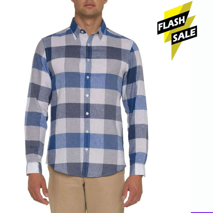 S W Check Blue White Linen Blend Casual Shirt 8876
