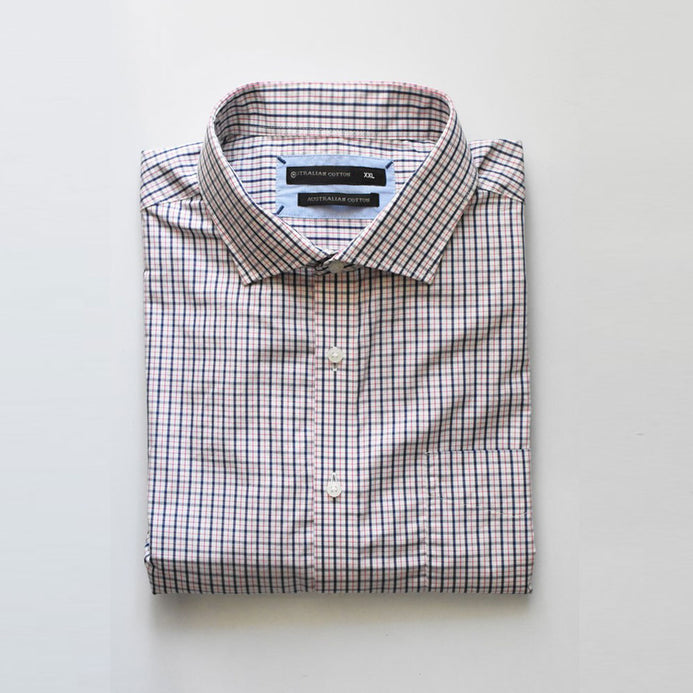 TRG Australian Cotton Casual Shirt White with Blue & Red Check