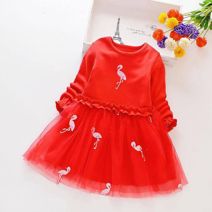 Muhammad Zeeshan Tong Zhuang Embroidered Swan Frill Red Frock 917