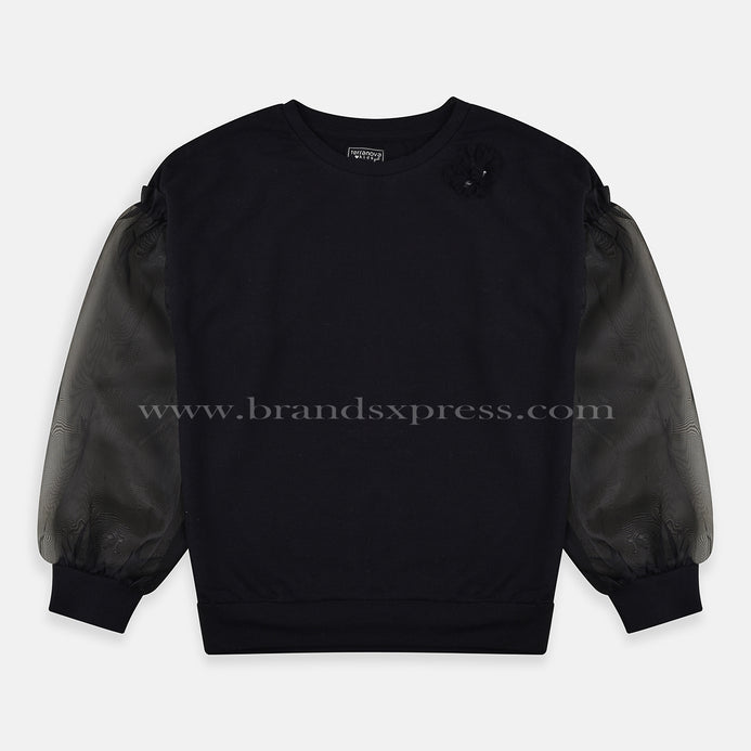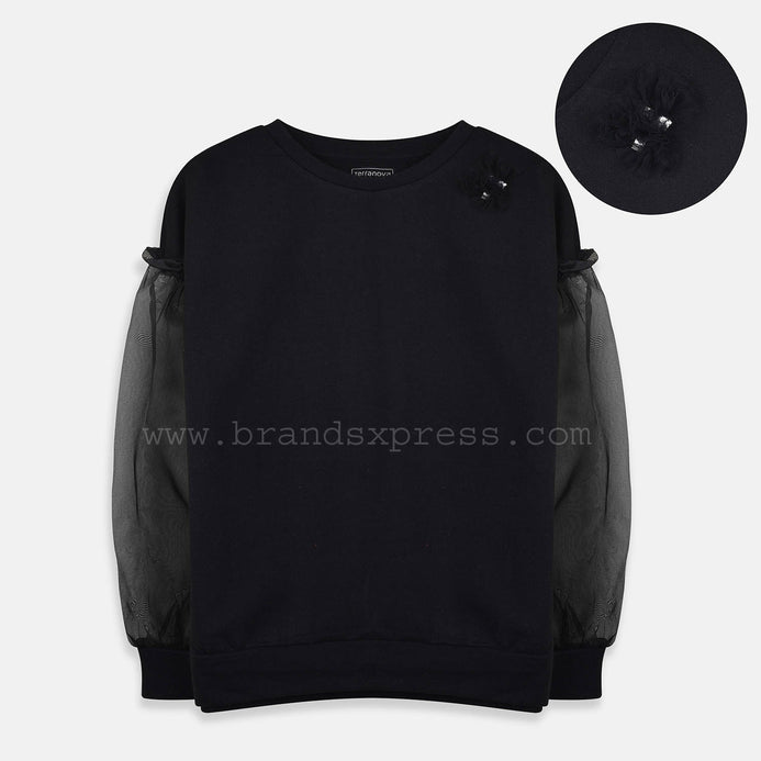 TRN Net Sleeves Flower Style Black Sweatshirt 3022