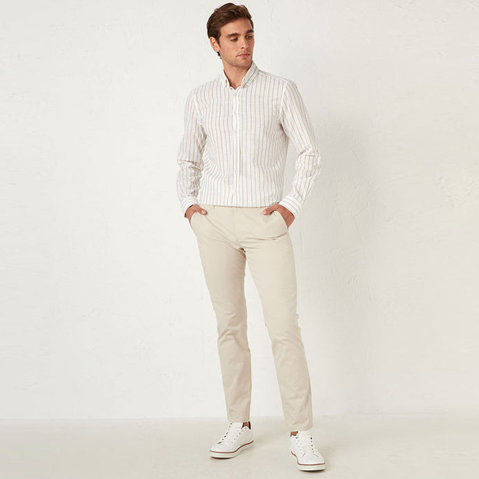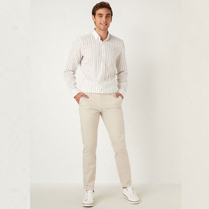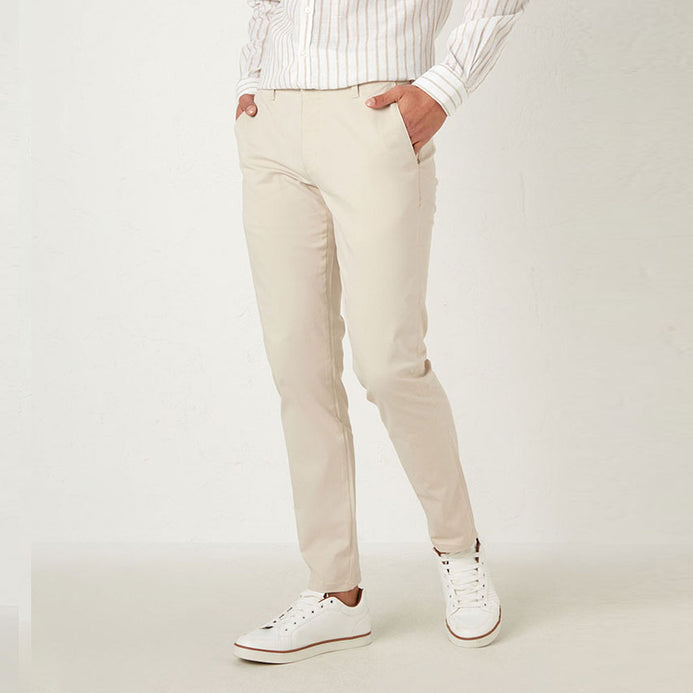 TS Soft Ivory Slim fit Cotton Chino With Belt 9546