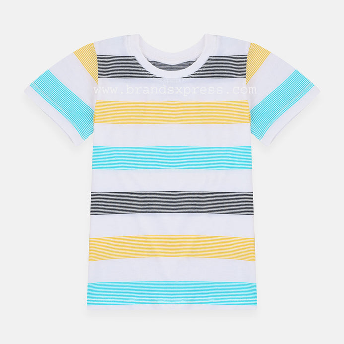 TT Blue Yellow Black Stripe White Tshirt 6148