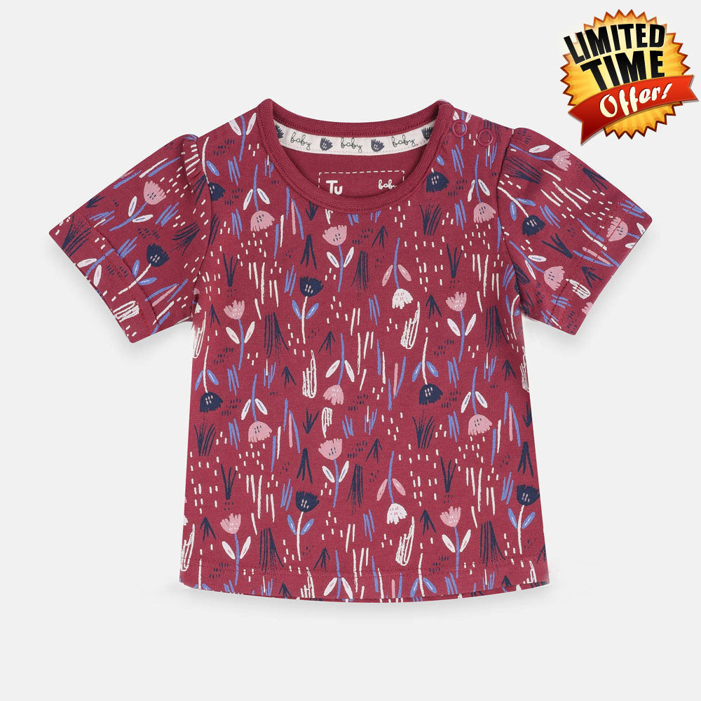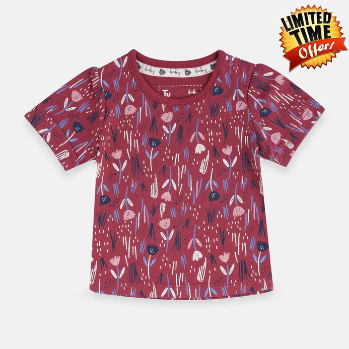 TU all Over Flower and Grass Print Mulberry Tshirt 1767