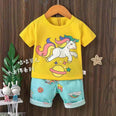 Unicorn Lemon Yellow & Aqua Blue 2 PC Shorts Set 9680