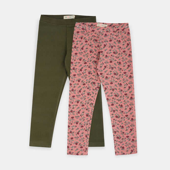 UNIT Tea Pink Floral with Green 2 Piece Legging Set 1639