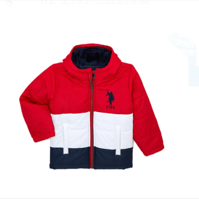 New arrival alert! This Boys’ Colorblocked Hooded Puffer Jacket from U.S. Polo Assn. is a warm, comfy addition to his outerwear. This stylish boys’ jacket features an attached hood design and water repellent finish—perfect to help keep him covered and dry during rainy or windy mornings while he’s headed to school or tags along on weekend outings.