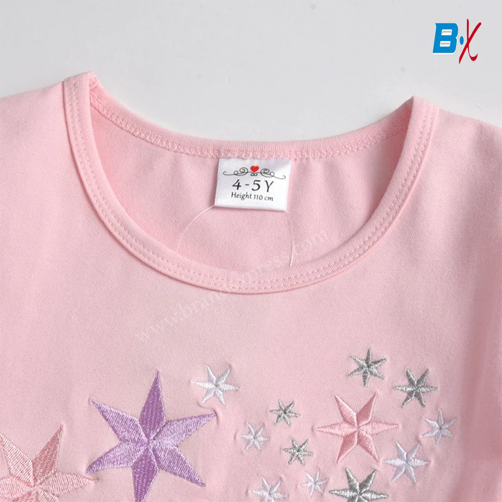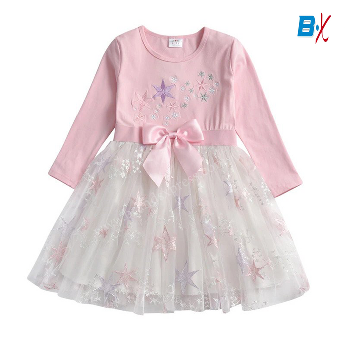 VKT All Over Embroided Stars Full Sleeves Pink Frock 10151