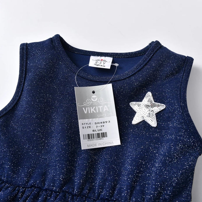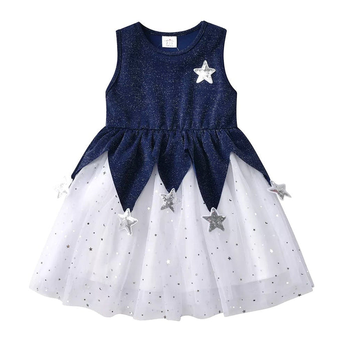 VKT Aplic Stars White And Navy Blue Moon And Star Frock 8718